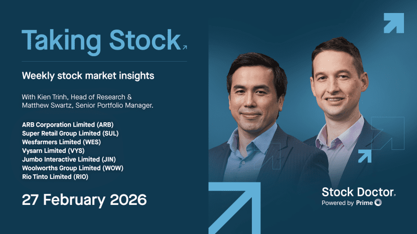 hiThis week on Taking Stock, Kien Trinh and Matt Swartz unpack the overall reporting season, with earnings upgrades for the market led by banks and miners, while retail results were mixed with a sharp divide between ARB Corporation (ARB), Super Retail Group (SUL) , Wesfarmers (WES) and renewed momentum at Woolworths (WOW). They assess cautious reactions to Vysarn (VYS) and Jumbo Interactive (JIN), and put mining giant Rio Tinto (RIO) under the microscope. To conclude, they explain how to interpret consensus price targets under Golden Rule 5.